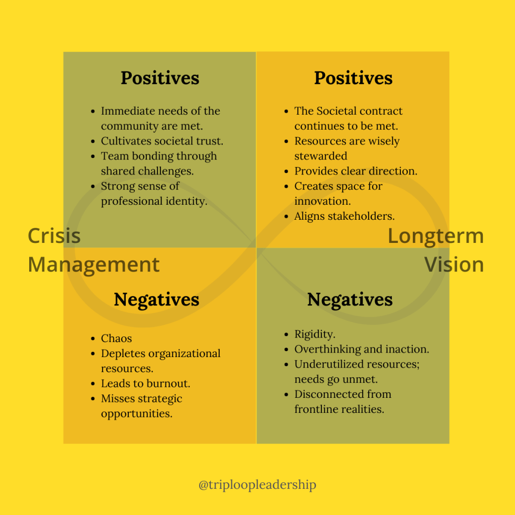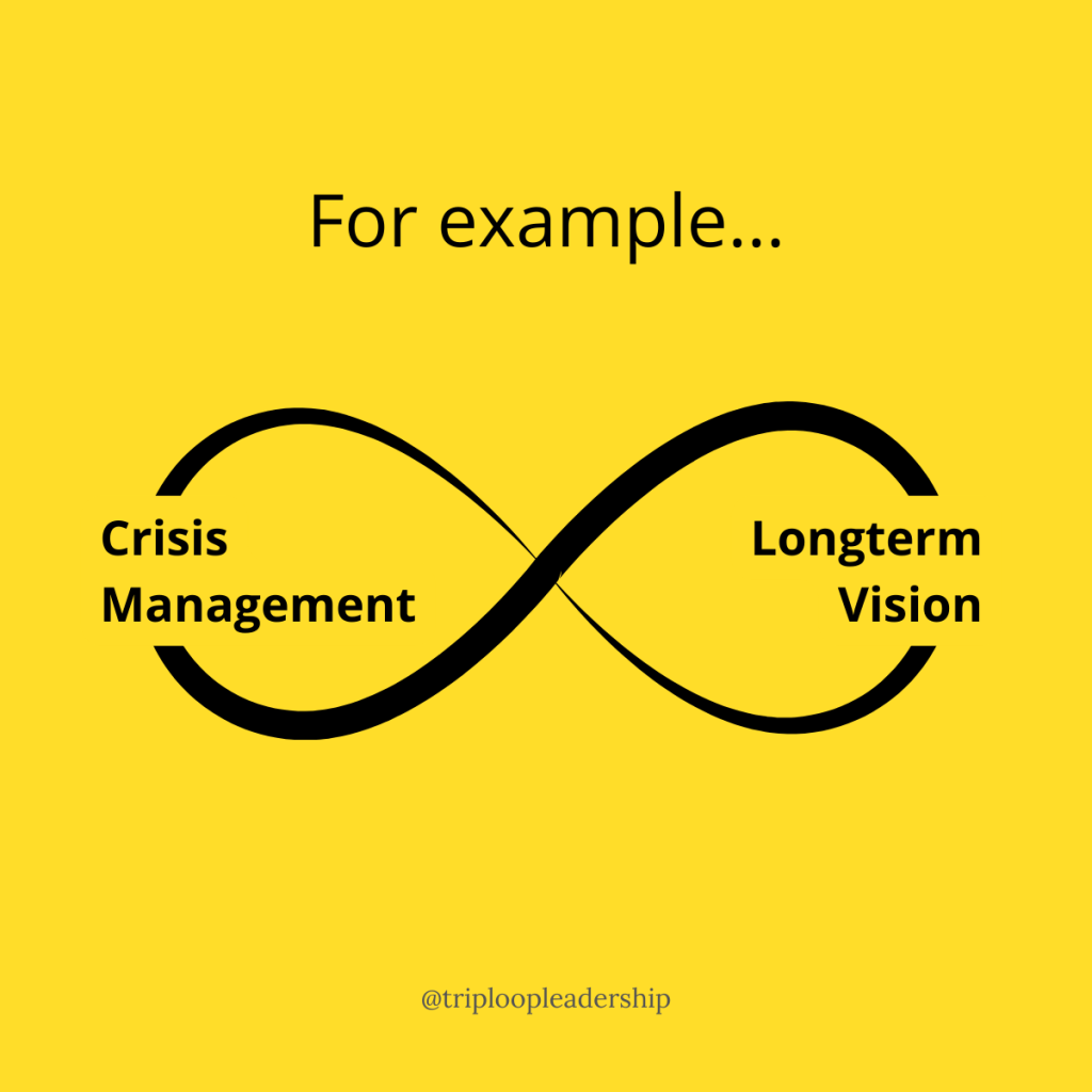While a focus on crisis requires agility, when our attention turns towards strategic planning in service of a grand vision, we begin operating with an eye towards stability and steady progress. These are two entirely different ways of managing and leading. Our best attempts to address both can leave us feeling tossed back and forth inside an impossible balancing act.
