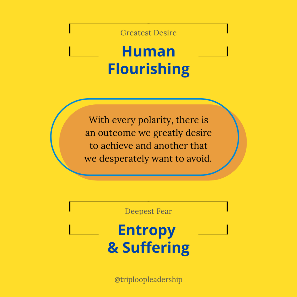 The smart leader acknowledges the dynamic tension that exists within a polarity and seeks to work with it.